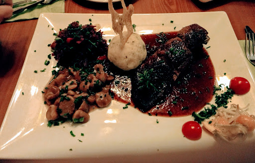 Read moreEin Paradebeispiel dafür, woran Gastronomie heutzutage krankt. Die Speisekarte ist ein kruder Mix wahllos zusammengestellter Gerichte, der keinen roten Faden erkennen lässt. Das wäre an sich ja nicht schlimm, würde am Ende die Qualität passen. Was aber leider nicht der Fall ist. Wenn ich Fertigsoßen, billige Nullachtfünfzehn-Gewürzmischungen und Eimersalat will, gehe ich zum Discouter um die Ecke. Da weiß ich, dass ich Dreck kaufe. Kost ja auch nix. Anders im Goldenen Engel, der zwar preislich im Durchschnitt liegt, für die Qulität aber definitiv zu teuer ist.