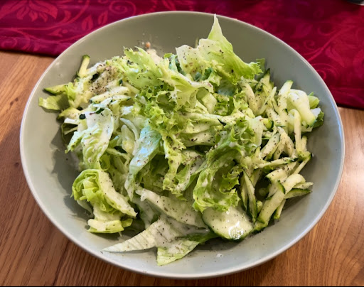 Der Salat war stimmig. Leckere Sauce, leckeres, knuspriges Brot (Weißbrot und Schüttelbrot), keine unnötige Tomate als optische Beilage (Tomate = nicht grün! ;-) ). Hat mir sehr geschmeckt. Als Vorspeise vielleicht etwas zu groß, hatte aber großen Hunger. Würde ich wieder bestellen.