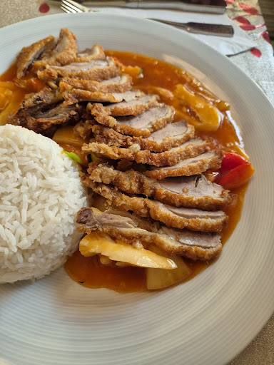 Ich möchte das Restaurant wirklich nicht schädigen, aber das Essen kann ich einfach nicht weiter empfehlen. Die Betreiberfamilie ist nett, die Gerichte haben allerdings nicht viel mit Asien zu tun. Die Soßen waren wässrig, das Gemüse TK und es wurde mit soviel Currypulver gearbeitet, dass die Gerichte nur danach schmeckten. Keine vielfältigen asiatischen Aromen, nichts... Ich habe eine Suppe, die Tom-Kha-Gai, bestellt und war sehr entäuscht, sie war wässrig und ohne Geschmack, keine Spur von dem Zusammenspiel aus Säure, Schärfe und leichter Süße. Dann sollte man das Gericht lieber von der Karte nehmen. Auch die anderen "Thai-Curry" Gerichte verdienten ihren Namen nicht. Einzig Ente süß-sauer soll in Ordnung geschmeckt haben.