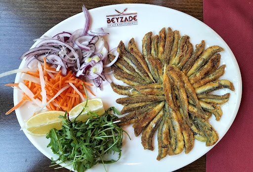 After reading the reviews of Beyzade we decided to give it a try and I must say it was a great choice. We sat outside which was basically on the sidewalk of a quite little back street (so not the main street environment but nice all the same). Service was friendly, quick, and excellent. From the new looking tables to the nice looking menus and even the little detail of the pocketed napkins that hold the Beyzade imprinted silverware, it is easy to see that someone has put a great deal of thought and effort into letting customers know that they strive to be a cut above their competion. So what about the food? We started with two white wine spritzers (the only recommendation I have is to be a bit more generous on the drinks). We had the warm starter platter for two (see the menu) with Turkish Bread and a garlic yogurt sauce ....OMG!...it was fantastic. A gentleman waking by saw the platter and even stopped to ask us what we had ordered. So..we can honestly say...it was a starter platter that literally stopped passers by. We also ordered one Beyzade Pfanne (mixed roast pan) with a light currysauce and rice and one Lammpfanne (lamb pan) with a cream sauce and rice. BOTH WERE ABSOLUTLY DELICIOUS!....and we both ended up only being able to eat half of each after such a wonderful starter platter. To top it off, prices are very reasonable. If you are looking for a place to relax, enjoy great/authentic Turkish food, great friendly service....then Beyzade is the place for you. You will not be...