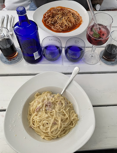 Spaghetti Napoli für den Nebentisch kam an, wo der Kopf geschüttelt wurde, da hat sich dann die Bedienung zu uns umgedreht "ach könnte auch Bolognese sein" und Stellt den Teller bei uns ab