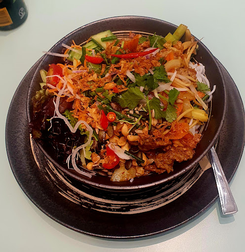 Read moreHabe heute zum 2. Mal dort eine Tom Yam Kung Suppe bestellt. Die Suppe, die ich vor einigen Wochen bekommen hatte war in Ordnung. Die Suppe, die ich heute bekommen habe, hat regelrecht gestunken. Nicht wie eine Suppe, die gekippt und sauer geworden ist..undefinierbar, ich konnte es nicht zuordnen. Erinnerte im weitesten Sinne an Kotze. Dementsprechend war der Geschmack. Ich habe leider keinen einzigen Löffel hinunter gebracht und reklamiert. Als ich mein Problem vorbrachte, wurde die Verkäuferin sehr unhöflich, laut und fing an, mich zu beschimpfen. Sie nahm mir die Suppe weg. Da mein Bekannter Lebensmittel Chemiker ist, wollte ich sie unbedingt zurück haben und mitnehmen. Das Geld habe ich auch nicht zurück bekommen. Hinter mir hatte sich eine lange Schlange gebildet und die Leute fingen an unruhig zu werden. Deswegen bin ich letztenendes ohne Suppe/ Geld abgezogen. 4,90€ waren mir keinen größeren Aufstand wert. Ich habe schon viele Tom Yam Kung weltweit gegessen und erwarte von einem Schnellrestaurant bei weitem nicht die Qualität eines guten Thai Restaurants, aber dieses etwas, das mir dort als Tom Yam Kung vorgesetzt wurde, kommt in mein persönliches Guinnesbuch der Rekorde der schlechtesten Suppe aller Zeiten. Das war sicher das letzte Mal in meinem Leben dort etwas zu essen zu...