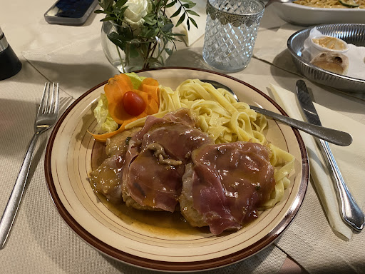 Die Karte im La Grotta besticht durch ihre Bodenständigkeit und ihren Fokus auf klassische, handwerklich zubereitete Gerichte, die die authentische italienische Küche widerspiegeln. Unser erstes Gericht, das Saltimbocca alla romana, war ein Paradebeispiel für einfache, aber meisterhaft zubereitete italienische Küche. Das Kalbsfleisch war perfekt gegart – zart und saftig – und die Kombination aus Salbei und Parmaschinken in der feinen Weißweinsauce war einfach köstlich. Die Tagliatelle, die dazu serviert wurden, waren al dente und rundeten das Gericht harmonisch ab.