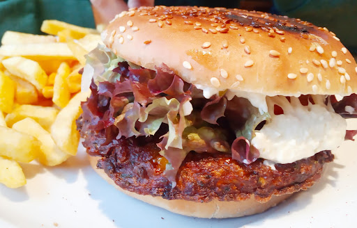 My second visit here. I already love this place.. the burgers are excellent, we had a cheese burger and a veg burger. They give equal importance to the buns too... both halves nicely grilled, and cheese melted to perfection. They give a pretty generous serving of fries along with the burger. I always get mine packed to go because it's too much for me to finish. The chilled guinness was perfect with the burger. The ambiance is great. Warm comfortable place, friendly staff, and old English rock music playing softly... Couldn't ask for more. Above all, the location is great too, nice view from the window seats on a cold winter day, or outdoor next to the square in fine weather....