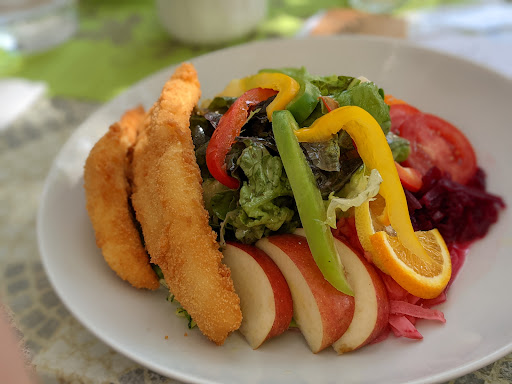 Read moreWe had our lunch at this restaurant and luckily we got a shady cool table on a very sunny day. The menu offers varieties of fish, typical German food and local vine as well as other drinks. The fish is mostly pan fried with butter or oil. We had two fish dishes with a lot of very fresh Salat and "Rohkost" and were very happy with the taste and quality. The service was friendly and fast and prices are reasonable....