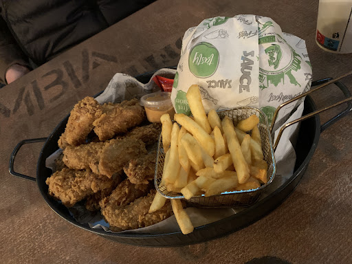 Read moreGehe dort recht regelmäßig essen und es wird nicht Langweilig. Der Außenbereich ist nicht wirklich zu empfehlen, das ist allerdings der Lage an der Straße zu schulden (Trotzdem Sauber und Aufgeräumt). Innen wirkt es nicht wie ein Fast-Food Restaurant, besonders nicht der obere Bereich des Restaurants. Es hat seinen eigenen Flare und die optische Gestaltung empfinde ich als sehr ansprechend. Sauberkeit ist so eine Sache. Es WIRD sauber gemacht, allerdings nicht direkt nachdem jemand gegangen ist. Es befinden sich nicht selten noch ein paar Fettflecken o.ä. auf dem Tisch, die man selbst mit einem Tuch säubern muss. Ich empfinde den Speisebereich trotzdem als angenehm und es ist super entspannt mit Freunden dahin zu gehen. Nun zum Lieferdienst: Ich habe einmal bestellt - und sonst auch nie wieder. Warum? Das Essen war kalt, das Chicken steht 1h rum und vertrocknet. Die Pommes werden lapprig und generell lagert sich das fett nach unten in die Verpackung. Nicht besonders nice...