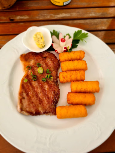 Read moreThe food here is nice! I ate a steak with those funny shaped patatoes and the steak was on top. I would recommend to eat at 5-6 PM because it will get crowded. But it was a very...