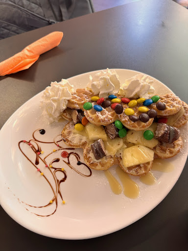 Read moreWaren heute zum ersten Mal dort und jetzt verstehe ich, warum meine Bekannten alle so begeistert sind!! Aus einer Karte mit sehr vielen Variatonen für besonderen Belag (z.B. Amicelli, Bounty, Mars uvm), Toppings, Soßen, Früchte und Eis stellt man sich seine eigene Waffel zusammen. Das Ergebnis ist nicht nur wunderschön präsentiert, sondern schmeckt auch noch absolut köstlich. Das ganze kostet in etwa so viel wie ein großer Eisbecher bei einer Eisdiele, lohnt sich aber mehr. Außerdem ist das Personal sehr...