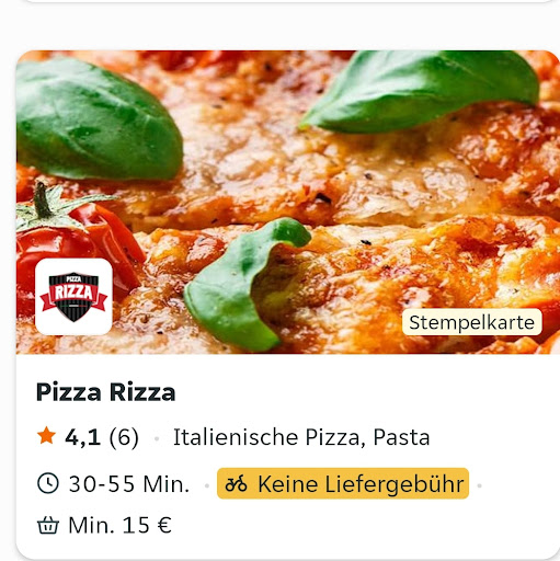 Read moreNie wieder! 2 Pizza zum liefern bestellt. Lieferzeit war mit 30-55 Minuten angegeben. Lieferung nach über 1,5 Std und dann auch lau warm. Beide Pizza ungenießbar! Käse und Tomaten Soße kaum vorhanden und rest was fast noch roh! Pizza aus der Tiefkühltruhe schmeckt 1000 mal besser!