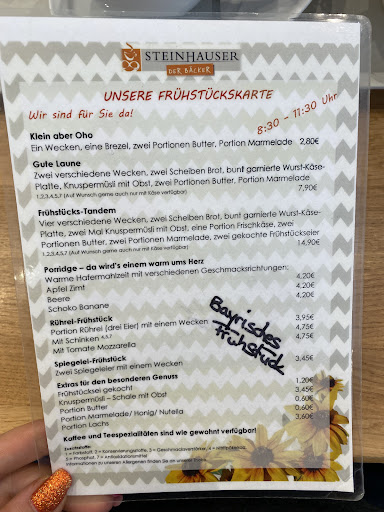 Alles in allem kann ich die Bäckerei Steinhauser uneingeschränkt empfehlen. Die super Bedienung, die leckeren Backwaren, das Tandem Frühstück und das charmante Ambiente machen diesen Ort zu einem echten Genuss für die Sinne. Egal, ob man einen Snack für zwischendurch sucht oder gemütlich mit Freunden frühstücken möchte, hier wird man garantiert nicht enttäuscht. Ich freue mich schon auf meinen nächsten Besuch in dieser stilvollen...