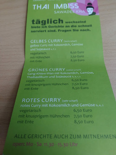 Read moreImmer wieder gerne. Super Essen mit gutem Geschmack. Diesen Imbiss kann ich jedem ans Herz legen. Ich habe eigentlich schon alle Gerichte ausprobiert und wurde immer wieder überrascht wie vielfältig und interessant die thailändische Küche schmecken kann. Die Fahrt dorthin lohnt sich immer wieder und eins muss ich noch sagen: Preisleistungsverhältnis echt top. Da bekommt man wenigstens etwas für sein Geld. Daumen...