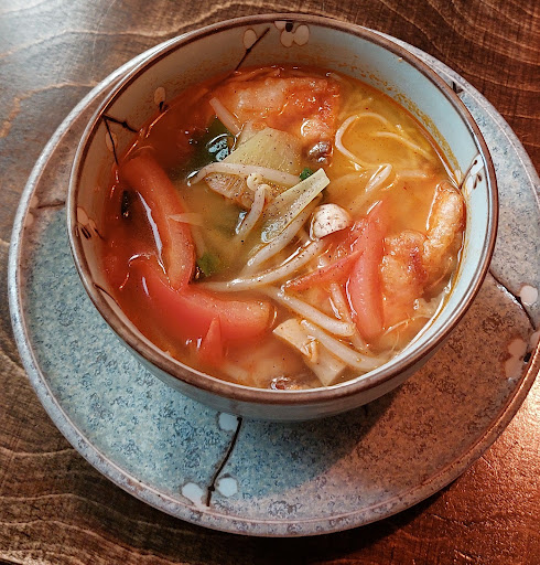 Finding such amazing Asian food in a small city like Lörrach was truly impressive. We are visiting from the Bay Area in California, where we have high standards for Asian cuisine, especially pho, which we often enjoy. Our first visit to Sean was motivated by their offering of pho. We ordered the beef pho, and the broth was incredibly flavorful—it really exceeded my expectations. The only minor downside was that the beef slices were too thick, making them a bit chewy, almost like rubber. Typically, the pho we have is made with thinly sliced raw beef, cooked by pouring hot broth over it.