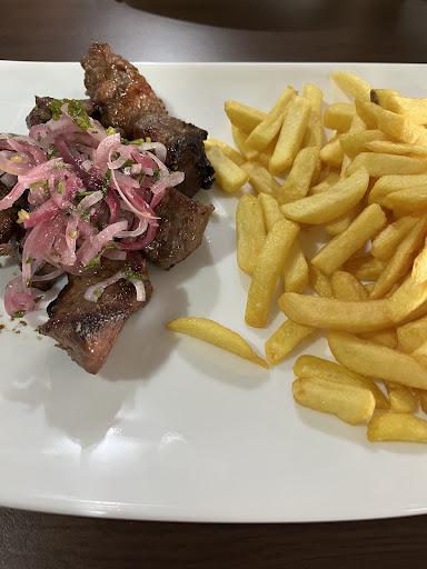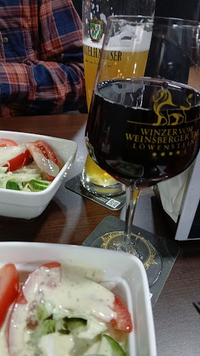 War hier auf ein kurzen Stop mit dem Mopped um mir Mittags auf die schnelle was zwischen die Kiemen zu ballern. Ein unscheinbares Bistro in einer Einkaufsmeile in Möckmühl was anscheinend sehr viel zu bieten hat. Die Karte verspricht sehr viel, Preis- / Leistung scheint in Ordnung zu sein sowohl beim Essen als auch bei den Getränken. Insgesamt alles sehr passend und stilvoll eingerichtet selbst bis in kleine Details wie etwa den Tischservice wo das Logo vom Bistro abgebildet ist. Nächstes mal probiere ich auf jeden Fall den Schaschlik, zwar wurde mir der angeboten bzw. empfohlen als ich bestellt habe, jedoch hat mich bisher kein Imbiss ernsthaft mit "Schaschlik" überzeugen können, eher meistens enttäuscht. Liegt aber daran, dass ich mal russische Nachbarn hatte die mir gezeigt haben was Schaschlik nach russischer Art ist, seither bekomme ich das marinierte deutsche Zeug mit allem möglichen anderen auf dem Spieß kaum noch runter. Ich habe in den anderen Rezensionen hier aber gerade Bilder entdeckt vom Schaschlik den es hier wohl gibt und der sieht mal genau nach dem geilen Zeug aus was ich mir eigentlich vorstelle xD. Schade, dann das nächste mal. Womit ich auch zum Ende kommen will. Die Currywurst mit Brötchen war sehr lecker. Für meine Empfindung keine Fertigsauce sondern selber gemacht. Auch die Wurst und das Brötchen war definitiv nichts von der Massenproduktion Stange sondern hatte einen ganz eigenen leckeren Geschmack und guten Biss.