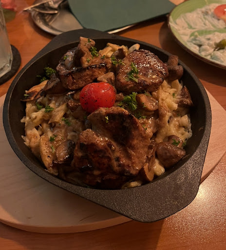 Das Restaurant/Bar kann ich auf jeden Fall weiterempfehlen. Das Essen war gut! Es ist auf jeden Fall eine geile Idee eine Maultasche in ein Cordon Bleu zu machen 🤪😋. Hat auch mega gut geschmeckt. Das einzige was ich bemängeln kann dass ich gefragt wurde ob ich Braten oder Rahmsoße dazu möchte. Mir wurde am Anfang keine Soße gebracht und auf Nachfrage eine Bratensoße mit Sahne. Ja es hat gut geschmeckt und ja es war eine Rahmsoße aber man hat gemerkt dass sie eigentlich nur Bratensoße hatten und extra noch schnell eine Rahmsoße gezaubert haben. Kann passieren war auch nicht weiter schlimm. Das Ambiente war im Restaurant zwar schön aber leider wie in vielen anderen Restaurants mittlerweile auch sind die Tische echt knapp bemessenen.
