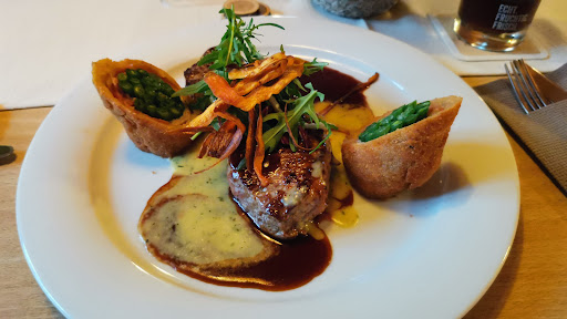 Read moreWir waren eine große Gruppe samstags zum Mittagessen mit Voranmeldung. Wir wurden sehr freundlich empfangen. In der Karte steht, dass alle Gerichte frisch zubereitet werden. Der Service war schnell und aufmerksam und das Essen kam recht zügig. Niemand musste warten. Alle Speisen waren für das Auge sehr ansprechend arrangiert. Das haben sie drauf. Die Zufriedenheit war gemischt. Es ging von super bis na ja... Mein Fisch war gut gebraten, das Risotto leider "staubtrocken". Der Tafelspitz meines Partners leider teilweise zäh. Unser Kommentar wurde ohne Erwiderung zur Kenntnis genommen. Sie führen sehr leckeres Bier von der Brauerei in Wurmlingen. Alles in allem würden wir wieder hingehen, wenn wir in der Gegend wären und...