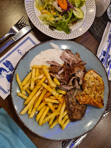 Wir waren seit Beginn der Corona-Zeit nicht mehr dort, hatten nur noch Essen zum Abholen bestellt. Damit hatten wir dann aufgehört, als die Portionen immer kleiner wurden, bei steigendem Preis. Seit langer Zeit waren wir nun mal wieder dort, und ich war doch etwas enttäuscht. Das Preis-Leistungsverhältnis hat für mich nicht gestimmt. Ich habe den gemischten Grillteller für 20,50€ gegessen. Die beiden Lammkoteletts waren so winzig dass ich mich gefragt habe, ob das Lamm direkt nach der Geburt geschlachtet wurde. Das Rinderfilet war ein kleiner, dünner (vllt 3mm), ovaler, zäher Lappen. Das Hähnchenbrustfilet ca. handtellergroß und ebenfalls sehr dünn (evtl. 4, max. 5mm). Dazu ein paar Pommes, Zatziki und 3 Zwiebelringe. Der Beilagensalat musste extra bestellt werden (2,90€). Zu allen Fleischgerichten, außer Lamm, gibt es nur Pommes. Ich war nach dem Essen nicht wirklich satt, die Auswahl an Nachtisch hat mich aber nicht angesprochen, so dass ich dann zuhause noch eine Kleinigkeit gegessen habe.