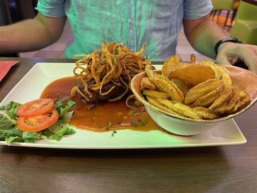 Read moreWir waren 09.10.2021 mit Freunden das erste Mal dort gewesen und waren hochgradig begeistert. Als wir außen vorgefahren sind dachte ich so bei mir, dass es sich um einen zweitklassigen Fresstempel handelt. Den Eindruck hatte ich auch schon, als ich mir die Speisekarte im Internet angeguckt habe. Große Lust, reinzugehen hatte ich nicht mehr. Ich bin froh, dass ich ausnahmsweise nicht auf mein erstes Gefühl gehört habe. Mit Sicherheit hätte ich einen tollen Abend mit einem super Essen verpasst. Beim Betreten des Restaurants habe nicht gerade die große Gemütlichkeit empfunden. Der Kellner an dem Abend hatte eindeutig noch sehr wenig Erfahrung die n der Gastronomie, war aber extrem bemüht und hat einen tollen Service geboten. Ich habe mir dann das Rib-Eye-Steak (medium) mit Knobipommes und Knobidipp bestellt. Das Staek war perfekt gegrillt mit einem hauch von Röstistoffen. Die Pommes waren meiner Meinung nach hausgemacht und geschmacklich super. Auch der Knobidipp war super. Alles im allen kann ich sagen dass ich kein Steak-Haus dieser Welt brauche, wenn ich hier ein Rib-Eye-Steak in dieser ausgezeichneten Qualität und dann noch zu diesem Preis bekomme. Wir sehen uns bestimmt wieder. Macht weiter...