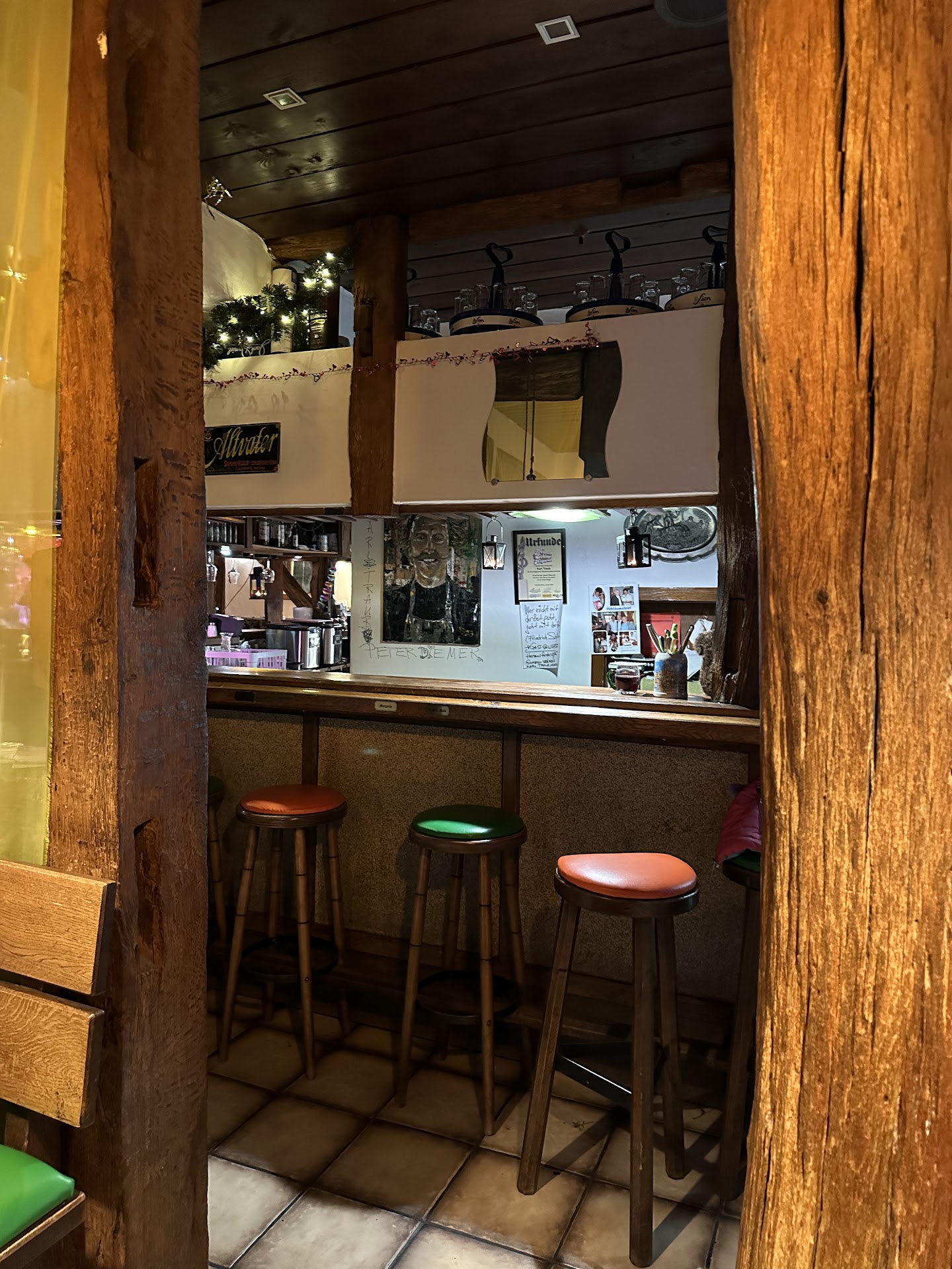 Schöne urige Kneipe viel holz , liebevoll eingerichtet, für kräftige menschen sind die fest verankerten tische etwas beengend, schlagermusik, nettes freundliches Personal, und der wirt ist ein Markenorginal mit dem man entweder sofort warm wird oder sicher auch garnicht kann.