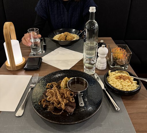 Essen zur Hälfte lecker (für den sehr gehobenen Preis aber auch zu erwarten) - die Beilage aber teilweise ungenießbar und ging auf Rückfrage direkt zurück in die Küche.