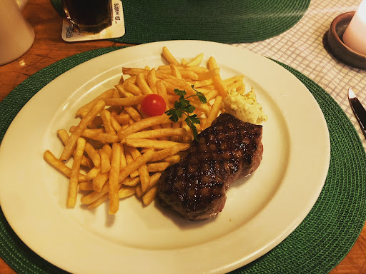 Read moreDas erste, was auffällt ist das schöne alte Gebäude , welches als historisch eingestuft ist und unter Denkmalschutz steht. Über eine Treppe gelangt man in den Innenraum, der rustikal gestaltet ist und über eine Tresen verfügt, wo man auch mal schnell ein Stehbier einlaufen lassen kann. Die Beleuchtung ist so gewählt und platziert, dass es ein sehr angenehmes Licht gibt, die Beschallung durch dezente zeitgemäße Musik trägt ebenfalls zum Wohlbefinden bei. Die Speisekarte ist aufgeräumt und die Preise bewegen sich im mittleren Preissegment was bezüglich Qualität und Quantität angemessen ist. Ich bestellte ein Steak, medium gebraten mit Beilagen. Trotz höherer Auslastung des Lokals hatte ich nach 20 min mein Essen mit einem perfekt gebratenen Rumpsteak, appetitlich auf dem Teller drapiert. Ich kann das Lokal mit bestem Gewissen...