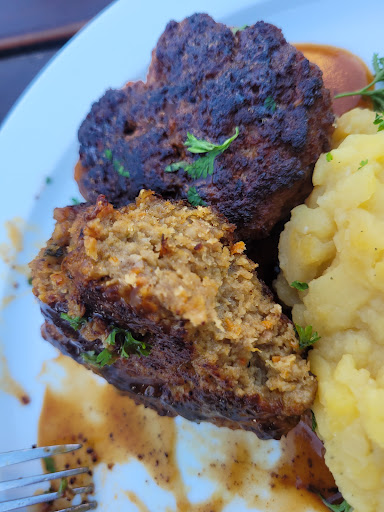 Read moreDas Essen war OK, aber nichts wirklich besonderes. Der Wurstsalat ist mit einer Art Joghurt- oder Sahnesauce angemacht. Muss jeder selbst entscheiden, ob er das gut findet, meiner Meinung nach geht das garnicht. Was aber schwerer wiegt ist, dass wir unser Essen in Teilen geliefert bekommen haben. Dass ich erst den Wurstsalat bekommen habe und die Bratkartoffeln dazu mehrere Minuten später ist ja noch zu verschmerzen, der Wurstsalat wird ja nicht kalt. Aber auch auf den Rosenkohl zum Cordon Bleu musste lange gewartet werden, das Cordon Bleu war schon halb aufgegessen, bis dieser endlich kam. Das kann nicht sein! Und wer zum Personal gehört und wer nicht ist auch nicht zu erkennen. Wir standen am Eingang, um auf einen Platz zu warten, als von draußen eine Person hereinkam, die wir für einen Gast hielten. Dieser sprach uns dann an und kümmerte sich auch, aber es war erstmal komisch. Und so ist es auch mit dem restlichen (teilweise recht unmotiviert wirkenden) Personal. Keine Schürze, kein T-Shirt, kein Namensschild weist sie als Personal aus, so dass man erstmal schauen muss, wen man ansprechen kann, wenn man etwas will. Alles in allem das Fazit: Hier muss man nicht nochmal herkommen.