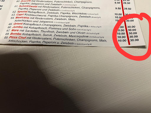 Read moreWart Ihr vorher eine Aphotheke?? Oder habt ihr die Preise von da übernommen.Eure Preisgestaltung ist ja wohl das letzte. Ein Beispiel: Pizza Chef Party von 30 auf 35.50 in Hofweier kostet die 22 Euro !! Zweites Beispiel große Portion Pommes 7 Euro ???? Wo gibt's den bitte sowas? Eigentlich müsst ihr ja alle AMG fahren und in Käfersberg ein Häuschen haben!!! Absolute Frechheit die Preise!!! PS: Rechnung kontrollieren!! Das nette Personal hat mir sogar 50cent...