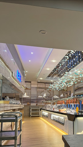 Das essen: ganz ehrlich, es war uns schon klar, dass man zum preis von 24 euro pro person inkl getränke ( die waren gut u reichlich)keine hohen Erwartungen an den geschmack und die qualitöt der speisen haben sollte. So kam es dann auch. Sushi zu trocken, diverse Gerichte waren voll fettiger Panade, das Inlay gar nicht vorhanden, oder aufgrund der überschaubaren grösse kaum geschmacklich zu identifizieren. Die Auswahl der frisch am Grill zu zu bereitenden Gerichte üppig. Ob ich unbedingt hai essen muss, steht auf einem anderen Blatt, aber qualitativ auch kein Highlight. Kann man aber auch zu dem Preis nicht erwarten.