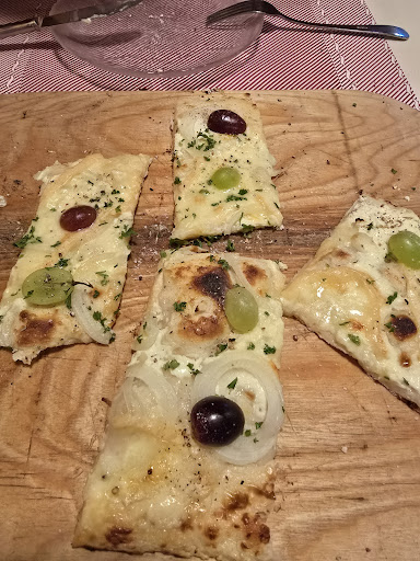 Whilst staying at the hotel infront we decided to try this establishment. It was busy but they found us a suitable table. We tried their house speciality French Pizza with a simple Pasta. Before we could add any more the lady suggested just order this for time being as otherwise it might be too much. Her advice was spot on. Both so simple but absolutely delicious. The first time we tried salad and pasta. The place then just filled up and the staff as much as they ran around they could not keep up. We decided to skip deserts, to allow other's to use the table. Throughly recommend a visit. Be patient. Remember Cash...