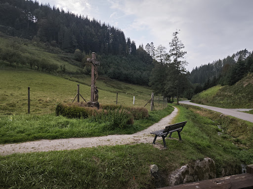 La pensione è fuori mano rispetto al paese, sul limitare della foresta, in un paesaggio molto suggestivo. La strada per arrivare però era un po' dissestata. C'è un ampio parcheggio gratuito. Ci hanno dato una stanza veramente carina, con un bagno un po' più grande di quelli trovati in Germania (come sempre niente bidet ma doccia molto ampia), e fornita di phon e altri accessori (minidentifricio e minispazzolino, rasoio usa e getta con micro pomata da barba). Non c'era una persiana ma almeno una tenda oscurante. Nella stanza c'era dell'acqua in bottiglia a pagamento. Non capisco come mai in TUTTA la Foresta Nera in ogni albergo in cui siamo stati ti danno delle misere bottigliette d'acqua costosissima quando siamo in una foresta piena di sorgenti naturali! Pazzesco.. Io ho bevuto dal rubinetto e sono viva. ||Abbiamo dormito molto bene, la pulizia era ottima. Colazione come sempre in questi posti soprattutto rivolta al salato. Unica cosa dolce pane e marmellata. La sala colazione era molto carina. Arredamento veramente bello in stile montagna chic. La vera pecca è stata la cena, discreta ma non ottima. Soprattutto i dolci (costosi) sono stati deludenti rispetto ad altri posti visitati in questa vacanza. Altra nota negativa, la signora che ci ha servito la cena era gentile ma pareva un gentile molto ma...