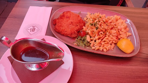 Ich war heute mit meiner Partnerin zum Essen in der Barfüßer Hausbrauerei Pfullendorf. Wir saßen bei dem schönen Wetter draußen. Die Plätze waren sauber und der Spielturm für die Kinder sah auch sehr schön aus. Besonders toll an dem Spielturm fand ich, dass er mit einem Holzzaun versehen war und die Kinder somit nur an einem Ein-/Ausgang hinein und heraus konnten. Das Ambiente auf der Terrasse war leider nicht vorhanden es gab ein paar Schirme (deswegen auch der Rotstich auf dem Foto) aber sonst war keine Deko oder Pflanzen zur Stimmung vorhanden. Schlicht halt. Wir konnten uns einen Platz aussuchen und die Bedienung nickte uns auch direkt zu... Dachten wir zumindest. Nach ca. 10 Minuten sitzen ergaunerte ich vom Nachbartisch die Speisekarte. Die Gäste haben auch direkt zu verstehen gegeben, dass sie heute auch besonders lange warten mussten bis sie bemerkt wurden. Wir hatten heute keinen Stress und gaben uns einfach Mal den Spaß. Nach guten weiteren 10 Minuten wurden wir dann zum Glück auch entdeckt (nur kurz als Info es war kaum etwas los der Außenbereich war zu dem Zeitpunkt ca 40% befüllt 30% davon waren schon bedient. Im Innenbereich war bis auf zwei Familien leer). Als es zur Bestellung ging hätten wir gerne etwas von der Tageskarte gehabt aber anstatt der vegetarischen Maultaschen gerne die mit Fleisch genommen. Hierauf wurde zwar angeboten, dass sie nachfragen ob das überhaupt geht aber es wurde schon sehr darauf hingewiesen, dass dies wahrscheinlich nicht gehen würde. Egal es gab noch eine Bowl als Alternative dann wurde die genommen und ich selbst nahm das Riesenschnitzel mit Spätzle mit Soße. Das Essen kam dann auch in angemessener Zeit. Leider nicht gleichzeitig. Zuerst wurde das Schnitzel mit Spätzle gebracht. Nach weiteren fünf Minuten die Bowl. Hier fragte ich noch nach der Soße welche dann auch nachträglich flott gebracht wurde. Das Essen an sich war sehr lecker. Die Bowl ist hier besonders zu empfehlen. Aber auch das Schnitzel mit Spätzle und Soße war sehr gut das Schnitzel war auch noch sehr saftig. Einzige Kritikpunkt am Schnitzel und das ist leider sehr sehr schade war die Größe. Dafür, dass es auf der Speisekarte als Riesenschnitzel beworben wurde hatte ich dann doch eher eine Kinderportion auf dem Teller aber seht selbst auf dem Foto (ja ich weiß an der eine Ecke habe ich schon etwas weggegessen aber ich denke es spricht für sich).