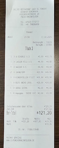 Wir haben an einem Freitagabend im Mai 25 im Restaurant El Poncho in Rheinfelden gegessen – ein Ort, mit dem uns viele schöne Erinnerungen verbinden. Früher waren wir oft dort, haben dort auch Feste gefeiert, und umso mehr haben wir uns auf einen entspannten Abend mit gutem Essen gefreut – insbesondere auf Fleisch vom Grill.