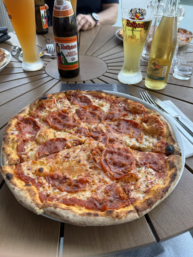 Wollten den schönen Sonntag ausklingen lassen und eine Kleinigkeit zu Abend essen. Wir besuchten zum ersten Mal dieses Restaurant und es wird auch beim ersten Mal bleiben. Wir bestellten 2 große Salate und eine Pizza Margarita. Der Salat kam schnell zusammen mit den Getränken. Nach 30 Minuten fragten wir nach, da mein Mann bereits mit seinem Salat schon lange fertig war und ich meinen restlichen Salat gerne zur Pizza fertig gegessen hätte. Die Bedienung nahm den leeren Salat Teller von meinem Mann und wollte meinen halb vollen ebenso mitnehmen. Ich meinte zu ihr, dass ich auf die Pizza warte. Sie meinte, sie gibt dem gleich Pizzabäcker bescheid. Also warteten wir weiter und weiter. Mittlerweile gingen soviele andere Pizzen raus. Selbst Gäste die nach uns kamen, hatten ihre Pizza schon. Ich beschloss, meinen Salat fertig zu essen um dann zu zahlen. Wir sagten der Bedienung, dass wir zahlen möchten, da meinte sie, das unsere Pizza jetzt fertig wäre. Wir meinten, dass wir die Pizza nach so langer Zeit nicht mehr wollten und ohne Pizza zahlen wollen. Der Chef kam raus, entschuldigte sich in keinster Weise und erklärte uns, dass wir wohl zu schnell den Salat gegessen hätten. ( Nach weiteren 45 Minuten) . Es kam keinerlei entgegen kommen vom Inhaber. Er präsentierte uns die Pizza in einem Mitnahmekarton. Wir zahlten die Pizza und brachten sie ungesehen und ungeöffnet zurück ins Restaurant (wir saßen draußen) . Der Pizza Karton wurde dann vor unseren Augen auf den Boden hinter die Theke geschmissen. (Unser Eigentum, da bezahlt )Was für ein Verhalten gegenüber dem Gast und seinem Produkt. Wir wären mit einer einfachen Entschuldigung einverstanden gewesen. Professionell geht anders!!!!!! Selbst meine Anmerkung an den Chef, dass ich eine schlechte Bewertung abgebe, wurden mir die Worte " Mir doch egal " entgegen gebracht. Fazit. Nie wieder. Keine Weiterempfehlung. Bernd und...