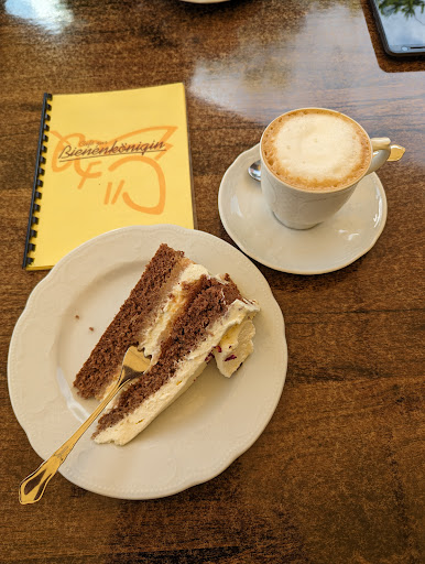 Sehr schönes Café mit einer herrlichen großen Außenterrasse. Die Terrasse ist sehr gut beschattet, so dass auch bei Sommerhitze der Kuchen nicht vom Teller läuft ... Die Qualität der angebotenen Speisen ist erstklassig. Bei der Auswahl wird sehr auf die Herkunft geachtet. Die Kuchen und Torten sind mit viel Liebe selbstgebacken und wirklich sehr gut. Das Lokal ist im ersten Stock. Trotzdem sind die Zugänge rollstuhlgerecht. Ein Aufzug ist vorhanden. Parallel zum Café gibt es im Haus einen Laden für Imkereizubehör. Der Besitzer ist selbst ein...