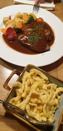 Angefangen bei der Karte. Es gibt weder Kroketten noch Pommes als Beilage, weil man leider keine Fritteuse habe. Überhaupt ist die Auswahl auf der Karte extrem klein. Auf Nachfrage welche Soße man haben könnte, gab es lediglich Bratensoße. Als ich sagte dass das nicht mein Geschmack sei und ob es noch eine andere Soße gäbe, bot man mir dann eine Rahmsoße an. Schade nur, dass später trotzdem eine Bratensoße mit einem Schuß Sahne verfeinert kam. Es gab auch kein paniertes Schweineschnitzel. Wer paniertes Schnitzel möchte, muß zum teuren Kalbschnitzel greifen, das leider relativ zäh war. Die Essen der anderen Personen am Tisch, waren geschmacklich leider absolut nichts Besonderes. Alles war sehr fad gewürzt. Die Bedienung war sichtlich angefressen, als man nach Pfeffer und Salz gefragt hatte. Ein Auf Wiedersehen, kam ihr dann auch nicht über die Lippen. Ich hätte ja gerne gesagt was uns nicht geschmeckt hatte, aber die obligatorische Frage ob es geschmeckt hat, kam erst gar nicht auf. Wir werden leider nicht...