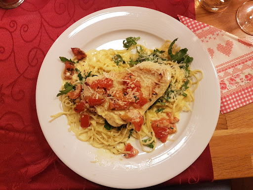 Read moreAlso mal vorab, bitte lasst euch nicht von dem Namen "Bahnhof Express'o" irritieren. Es hat rein garnichts mit einer Bahnhofskneipe zu tun. Wir (2 Erw.+2 Kids) sind zum Abendessen in das Expresso gefahren. Das Ambiente ist sehr schön und stilvoll. Nicht kahl und nicht überdekoriert. Das Möbiliar ist relativ neu und passt in das Restaurant. Wir wurden sehr freundlich empfangen und zu unserem reservierten Tisch gebracht. Die Speissekarte ist übersichtlich und nicht überfüllt. Wir haben uns als Vorspeise Tomatensuppe und Kürbissuppe bestellt. Zu den Suppen gab es Brot. Beide Suppen waren geschmacklich sehr lecker und frisch zubereitet. Als Hauptspeisse bestellten wir "Linguine an Pfifferlingrahmsauce mit Pfifferlingen" und "Putensteak an Ziegenkäsesauce auf Linguine mit Tomatenwürfel und Basilikumpesto". Also ich muss sagen die beiden Gerichte waren geschmacklich und bildlich Top. Das Putensteak war eine Punktlandung und die Linguine (Nudeln) al dente. Der Koch weis was er macht. Die Kids haben paniertes Schnitzel mit Spätzle genommen. Die Schnitzel war gut zubereitet, bloß bei den Spätzle bevorzugen meine Kids gekochte anstelle von in der Pfanne gemacht Spätzle. Aber sie waren geschmacklich in Ordnung. Dessert wurde natürlich auch bestellt :-) Es gab Schokokuchen mit warmen flüssigem Schokokern, Vanilleeis und Sahne. Da meine Tochter keine Sahne mag wurde diese einfach weg gelassen. Der Schokokuchen war auch sehr lecker. Bei meinem Eisbecher kann man nichts falsch machen :-) Da wir leider erst am letzten Abend im Bahnhof Expresso waren, hatten wir leidern nicht die Möglichkeit dort noch einmal zu essen. Schade. Wer dort in der Nähe ist sollte auf jeden Fall dort mal Essen gehen. Aber bitte reservieren da das Restaurant nicht zu gross ist und deshalb nur...