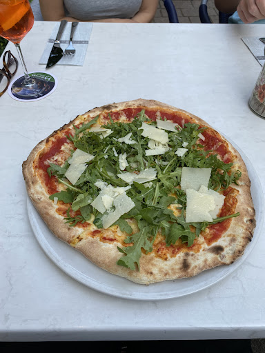 Read moreNach den überwiegend 5 Stern Bewertungen war ich ziemlich enttäuscht von dem Restaurant. Wir wollten einen Tisch reservieren, draußen unter den Bäumen kann man allerdings nicht reservieren. Unser Tisch drinnen war aber direkt neben dem Steinofen und bei 30 Grad im Sommer wirklich viel zu heiß, darum warteten wir bis draußen ein Tisch frei wurde, der allerdings mitten im Durchgang stand und ständig Gäste und Bedingungen eng an uns vorbei liefen. Das Essen kam schnell, die Pizza Toscana und Pizza Marinara waren sehr gut, Spaghetti Carbonara mit Sahne und ohne Käse erwartet man beim Italiener so nicht. Fand ich nicht gut. Auf den Bruschetta hat mir das Olivenöl gefehlt. Unser Colaweizen wurde vergessen und allgemein hatten wir das Gefühl, dass die Organisation schlecht war. Verschiedene Bedienungen wollten unsere Bestellung aufnehmen, nachdem wir bereits bei jemand anderem bestellt haben. Lange, lackierte Fingernägel empfinde ich in der Gastronomie als unhygienisch, aber vermutlich bekommt man heutzutage mit den Ansprüchen kein Personal mehr. Alles in allem okay, aber ich würde eher nicht...