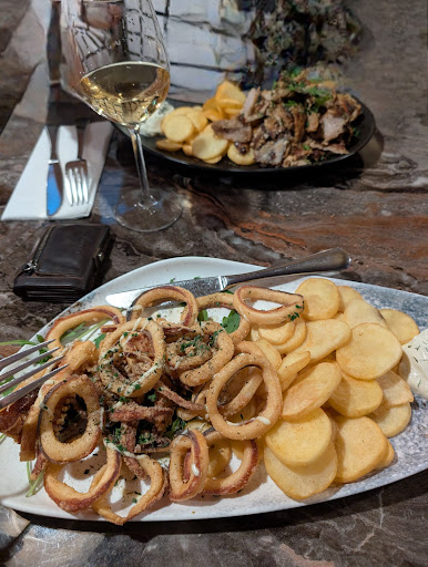 Zum Essen: Die Vorspeise – eine raffinierte Kombination mit einer Art Marmelade – war wirklich herausragend und absolut empfehlenswert. Mein Gyros war saftig, gut gewürzt und hatte endlich wieder den vertrauten Geschmack, den wir beim letzten enttäuschenden Besuch schmerzlich vermisst hatten. Auch die Calamari überzeugten mit einem guten Aroma, und die Kartoffelscheiben waren knusprig und geschmacklich gelungen.