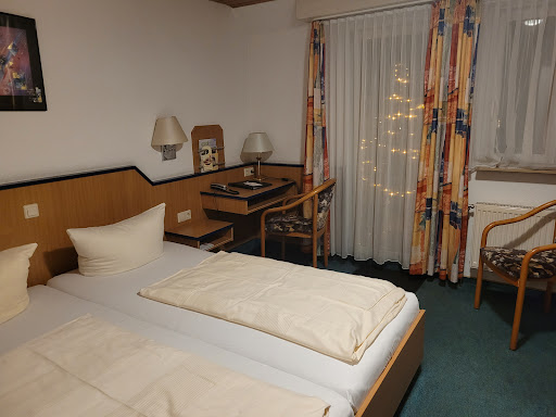 Read moreI stayed here in September for two nights. The hotel is in a small village a few miles outside of Schwabisch Hall. There is a good sized car park but it did get busy. My room was lovely, a really good size and modern bathroom. I was travelling on my own with my dog and had booked a single room but got a lovely double bed. My dog got a mat on the floor with two dog bowls provided - he appreciated that nice touch. I found the bed comfortable but think some people may find the mattress a tad firm.||The restaurant was fully booked (and it was a Monday night) but the helpful staff found me a table. I had an excellent meal on both nights and found the prices very reasonable. The service was good and the staff were friendly and helpful.||The only disappointment was the pub. It was REALLY smoky with people smoking cigarettes and I didn't even stay for one drink as it was so unpleasant. I took my drink into the restaurant but felt that kind of defeated the object of choosing a hotel with a bar.||Breakfast was very good, typical continental buffet style.||There was wifi in the restaurant but I couldn't get wifi in my room.||In the surrounding area there were countless lovely walks and I was lucky with the weather so had...