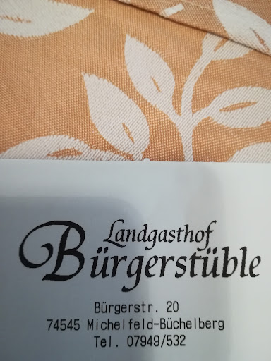 Read moreGutbürgerliche, leckere und deftige Küche. Aber das hat sich schon längst herumgesprochen. Das Bürgerstüble ist kein Geheimtipp mehr, die verschiedenen Kfz-Kennzeichen auf dem Parkplatz verraten es. Deshalb wichtig: Unbedingt reservieren !!! Auch zu vermeintlich „unorthodoxen“ Essenszeiten (z.B. Sonntags zur Öffnung um 16 Uhr) kann es schon schwierig sein einen Platz zu bekommen. Mein Tipp sind die gebackenen Apfelküchle zum Dessert ... unbedingt probieren, wenn bei den schon recht großen Portionen als Hauptgericht noch...