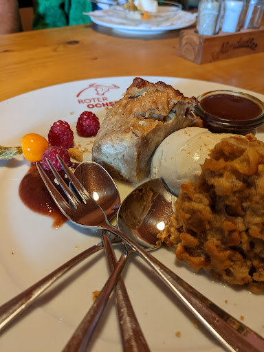 Positiv anmerken lässt sich, dass das Ambiente toll ist. Das Fleisch war perfekt gebraten und sehr zart, die Bratensoße war nicht gut, ich würde mal den Einsatz von convenience Produkten unterstellen. Der Beilagensalat war üppig, die Spätzle handgemacht und lecker. Zugutehalten lässt sich dem Personal vielleicht auch, dass es an dem Tag voll und recht hektisch war.