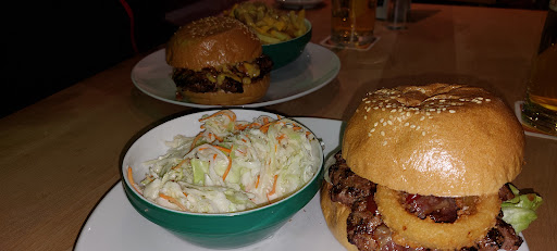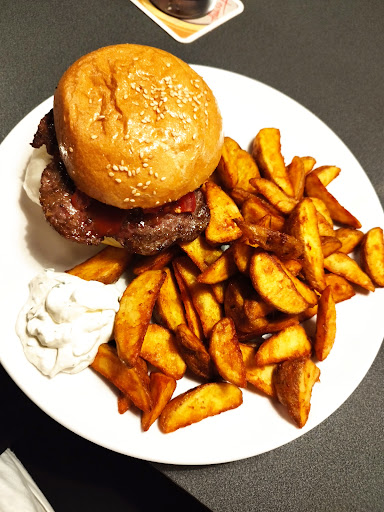 Der Veggi Burger wurde liebloser hingeklatscht, als meine Antworten bei der letzten Matheklausur. Das Bun sah wie ein Standart Aufbackbrötchen aus und hat auch so geschmeckt. Dazu gab es ein Salatbaltt, ein Kartoffelpatty, Analogkäse und einen nicht verteilten Klecks Ketchup. Da war selbst der Preis kein Trost. Das Cheddar-Cheese Topping auf den Mushroom fries hat diese leider total versaut. Es hat nicht nach Käse geschmeckt und hatte sonst auch keine Ähnlichkeit mit Käse. Die Champignon Rahmsoße war an sich lecker hats aber auch nicht mehr retten können. Die Aussage "das machen wir immer so", ist bei einem Preis von 6 Euro, auch nur ein kleiner Trost. Das Patty am Big Mustang war leider totgebraten und hatte daher keine Ähnlichkeit mit angeblich gutem Rindfleisch. Die Getränke kamen relativ schnell, dafür mussten wir eine dreiviertel Stunde auf unser Essen warten und durften dafür der Servicekraft beim Essen hinterm Tresen zuschauen. Die "Sprite" hat leider geschmeckt, als hätte sie zu 70% aus Sprudel bestanden.