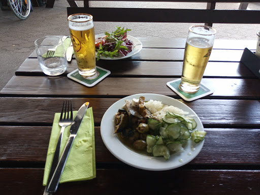 Read moreEncore une belle découverte en Allemagne en ce dimanche midi ! Petit resto sympa au bord d'une gravière, terrasse ombragée, grandes tables conviviales, serveuses aimables et attentionnées. Elle nous apporte un pichet d'eau gazeuse gratuit pour nous désaltérer par ces 35 degrés à l'ombre ! Du jamais vu en France où ils rechignent à la donner ! Ils ont un beau buffet de crudités, au moins 16 choix différents, on peut y remplir toute l'assiette a prix modique ! On a pris des "Badische Allerlei" très bien servis et très bons ! Bien rassasiés on a quand même craqué pour un "Schwarzwälder Becher" avec deux boules de glace, des cerises a l'eau de vie et de la chantilly, très bons aussi ! Et en plus l'addition y est très raisonnable ! Bref, un beau lieu a retenir et a revisiter sans hésiter...