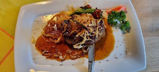 Meine Frau hatte Schnitzel mit Kroketten bestellt. Beim anschneiden des 1. Schnitzel stellte sie fest das es innen noch roh war. Reklamiert...kam nach 1 Minute der Teller ohne Kroketten aber dafür mit dem selben Schnitzel plus dem Abschnitt den sie abgeschnitten hatte frisch aus der Fritteuse zurück. Was jetzt schon aus hygienischer Sicht bedenklich ist! Essen vom Kunden zurück in die Küche ist nicht zulässig! Schnitt sie das 2. Schnitzel an....wieder roh. Zurück und direkt mit der Ansage das wir es nicht mehr möchten. Keine Entschuldigung...keine frage ob meine Frau etwas anderes möchte...nichts. Und nur mit lauter Ansage mussten wir die Schnitzel nicht bezahlen. So etwas ist uns noch nie passiert. Unsere Bekannte welche dabei waren waren genau so schockiert wie wir. Der Chef oder wer auch immef das sagen hat in dem Laden hat sich auch auf meine Bitte nicht blicken lassen aber die arme Bedienung immer wieder vor geschickt. Nie wieder