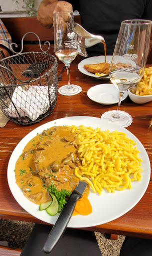 Selbst die kleinen Portionen waren für uns mehr als ausreichend. Die Flädle Suppe konnte durch viele Flädle und einen leckeren herzhaften Geschmack überzeugen. Das kleine Jägerschnitzel mit Spätzle, sowie der kleine Straßburger Wurstsalat mit Pommes waren sehr lecker. Besonders die Soße zum Jägerschnitzel bleibt in hervorragender Erinnerung. Die Service Kräfte sind freundlich, zuvorkommend und leisten tolle Arbeit. Den Ausblick bei der Ankunft ins Tal setzt dem ganzen dann noch die Krone auf.