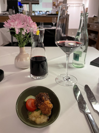 Read moreFür den Abschluss eines Tages in Singen haben wir zu dritt spontan ein Restaurant für den Freitagabend gesucht. Die Online verfügbare Speisekarte, hat uns seht angesprochen und uns ins Gasthaus Kreuz geführt. Schon das Ambiente ist eine Fusion aus den dunklen Balken und modernem, sehr geschmackvollem Mobiliar. Abgerundet von klassischen weißen Tischdecken und Stoffservietten. Nach einer freundlichen Begrüßung und Platzierung durch eine der drei sehr freundlichen und kompetenten Servicekräften, wurde uns die Karte gereicht. Diese Besticht durch eine sehr saisonale und regionale Ausrichtung, die durch internationale Einflüsse ergänzt wird. Es finden sich neben Klassikern der französischen und der südbadischen Küche auch einige moderne Gerichte. Diese sehr durchdachte Speiseauswahl, gibt jedem die Möglichkeit etwas Passendes zu finden. Fortgeführt wird das Konzept auch bei der Weinkarte: Welche einen deutlichen Schwerpunkt auf regionale Weine hat, die sinnvoll durch ausländische Tropfen ergänzt werden. Ein tolles Angebot ist, dass die Weine auch zu einen sehr fairen Preis Glasweise angeboten werden! Der Gruß aus der Küche, in Form eines kleinen Ziegenfrischkäses mit marinierten Kräutern, Preiselbeere und karamellisierter Walnuss löste bei uns eine Vorfreude auf das kommende Menü aus! Wir hatten als Vorspeise einen hervorragenden Salat mit sautierten Pfifferlingen: eine Mischung von grünem und rotem Eichblattsalat mariniert mit einer leichten Vinaigrette, abgerundet durch klassische Gartenkresse, die hier mehr als nur eine Garnitur war. Genauso konnte die gebratene Gänseleber brillieren. Serviert mit Süßkartoffelpüree und Johannisbeer-Jus waren ein echtes Highlight im Menü! Mir persönlich hätte noch etwas Knuspriges dazu gefallen. Im Hauptgang bekamen wir die Rote Wildfanggarnele auf Fettuccine mit Herbsttrüffeln, ein perfekt gegrilltes Zanderfilet unter Sesamkruste, mit klassischem Reis und marinierter Avocado. Auch der Pulpo mariniert mit Chimichurri auf Süßkartoffelplätzchen, und wildem Brokkoli bestachen durch ein raffiniertes Säurespiel! Der von mir gewählte Sauvignon Blanc war leider zu säure lastig für den Tintenfisch, beim nächsten Mal würde ich einen Grauburgunder dazu trinken. Abgeschlossen haben wir das Menü mit einem sehr mürben Stück Linzertorte. Sebastian Kopitzki und sein Team haben uns ein wahres kulinarisches Erlebnis geboten. An dieser Stelle möchte ich neben der bestechenden Küchenleistung auch die sehr versierte Serviceleistung...
