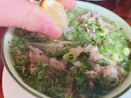 Short waiting time. The predish was authentic. The chickenstick was juicy and the peanut sauce fits very good. The summer roll was good. ( i font like the salat inside ) The pho was nearly like i know it from Vietnam. The soup wasnt a ready soup which was good. I like the coriander in it. I only wish to have a small plate extra with a slice of lemmon and some chopped chillies.