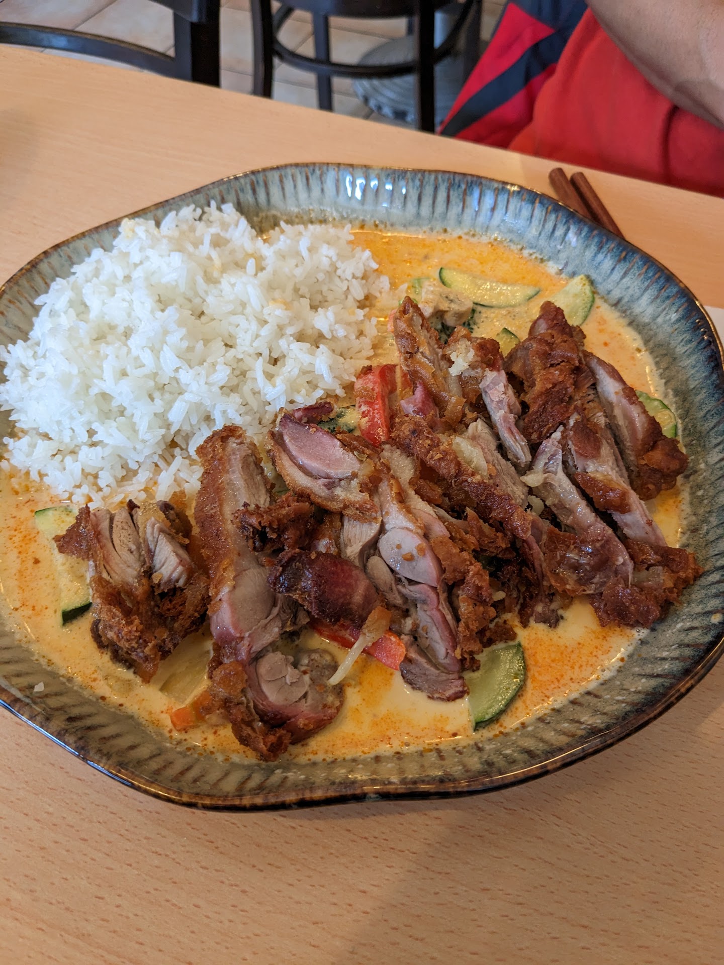 Absolut lecker. Die Portionen sind richtig groß. Wir hatten wantans als Vorspeise die waren grandios. Noch nie so knusprige und gut gefüllte wantan gehabt. Auch dss knusprige Hühnchen war top und die erdnusssoße der Hammer. Der Service könnte etwas präsenter sein. Wir hatten für den kleinen kein extra Teller, dann fehlten uns löffel usw. Aber das stört mich nicht denn die Preise stimmen, die Portionen sind der hammer und der Geschmack...