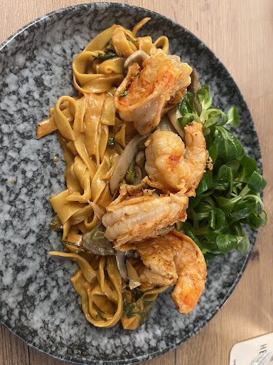Read moreWir haben heute dieses Restaurant ausprobiert. Optisch sah es soweit sehr gut aus. Wir hatten einen Tisch für zwei Personen bestellt, die Bestellung wurde auch bestätigt, doch leider war kein Tisch vorbereitet. Man zeigte uns einen 5er Tisch an dem auch für 5 eingedeckt war und dies blieb auch so. 10 Minuten nach uns kamen andere Gäste, während wir weiter darauf warteten, dass wir unsere Bestellung aufgeben durften. Als dann die Gäste noch vor uns bedient wurden waren wir verwundert. Aber im Anschluss durften wir auch unsere Bestellung aufgeben. Obwohl nur drei Tische besetzt waren erzählte man uns nichts von Herkunft des Essens usw. Die Getränke kamen dann schnell nach der Bestellung, soweit so gut. Das Essen kam kurze Zeit später, nur leider einmal das Richtige und einmal das Falsche. Sie haben sich freundlich entschuldigt und ein paar Minuten später kam das Richtige. Wir hatten einmal die Inside out Rolls die waren in Ordnung und einmal die Gambas auf Nudeln mit Waldpilzen und Feldsalat. Die Gambas sahen gut aus aber leider geschmacklos. Die Nudel waren vermutlich selbst gemacht und die Soße hatte die richtige Konsistenz. Aber geschmacklich fehlte uns das besondere. Der Feldsalat war gut wenn auch wenig und die Pilze waren lecker. Aber 28€ für die Nudeln mit Gambas ist übertrieben und geschmacklich einfach nicht wert. Zum Personal die Damen wirklich nett der Herr war wohl mit anderen Dingen beschäftigt wann immer wir es mit Ihm zu tun hatten hieß es warten trotzdem war er freundlich. Fazit jeder hat eine zweite Chance verdient und die werden wir auch dem Team geben. Aber von fast 5 Sternen war das heute einfach viel zu...