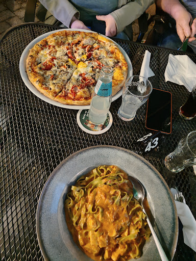 Nun zum Essen: Ich hatte die Pizza Diavolo bestellt (in 3 Größen erhältlich) . Diese hatte einen super Teig und war großzügig belegt. Als Nachtisch ein hausgemachtes Tiramisu - zum dahinschmelzen 😍 ... Das Hacker Pschorr Hell aus dem Fass und in Tonkrug serviert hat meinen Abend absolut abgerundet 🍺 ...