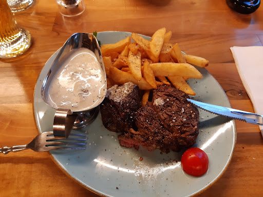 Read moreVon 4 bestellten Steaks waren 2 falsch gebraten. Ein medium-rare bestelltes Roastbeef kam durch und wurde anstandslos getauscht, das Zweite war ebenfalls nicht mehr ganz medium wurde aber so gegessen. Das Austauschsteak kam englisch an den Tisch und war innen noch kalt - ich hab's dann behalten aber sowas darf wenn man 30 Euro ohne Beilagen aufruft einfach nicht passieren.